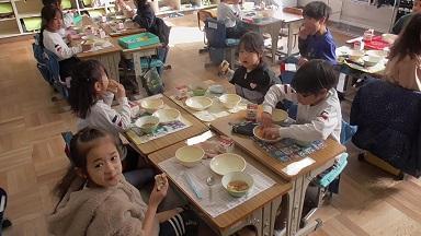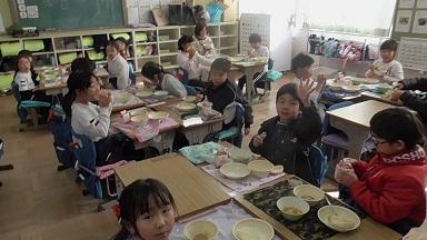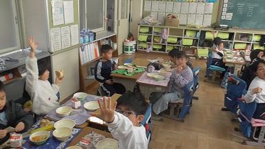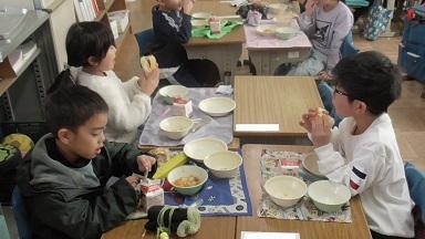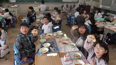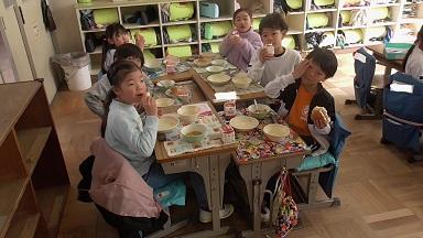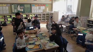 子どもたちが好きな「ミルメイク」は、給食では「コーヒー味」と「ミルク味」があるそうです。子どもたちのどっちの方が好きか尋ねてみましたが、そんなことは正直どうでもいいのです。それをネタに1年生の子どもたちと話しているこの時間がとっても楽しく感じます。こうしているうちに今日の給食訪問は1年生で終わってしまいました。魅力あふれる1年生に成長してくれました、
