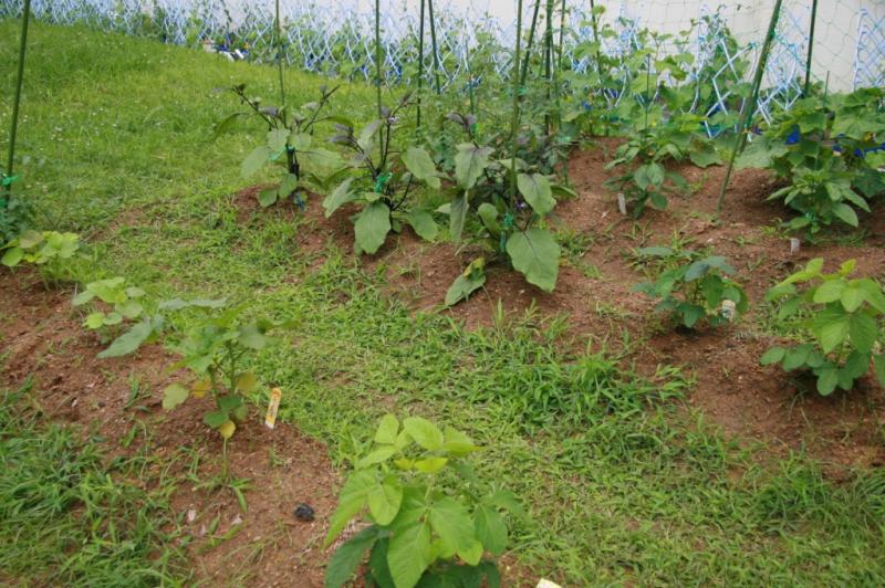 澄み切った青空の下 野菜の苗を植えました。ナス ピーマン キュウリ ほか 収穫の秋が楽しみです。