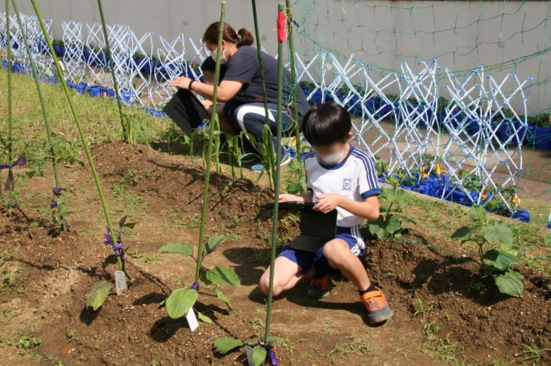 毎朝の観察日記もアイパットを上手に使って記録します。写真を撮るだけでなく,記録も打ち込むそうです。