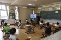 毎週水曜日は「おはなしタイム」からはじまります。子どもたちの関心やニーズ、教科との関連などから「価値ある話し合いの場」をめざしています。ちょっと覗いてみると、4年・5年が合同で実施していました。4年生は5年生のお話ぶりから、発信力だけでなく、ものごとの捉え方や考え方なども学びました。価値あるひとときでした。