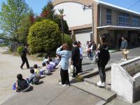 4つのたてわり班で分散し、園内をまわりました。1・2年生を気遣う高学年の姿が多く見られました。