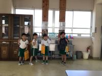 どろんこ遊びにつづき、5・6年生が田植えを体験しました。昔ながらのかたちで「代かき」を行い、PTA役員のかたが投入する苗を子どもたちが「ナイスキャッチ」して、田植えは進みました。5年生が計画した「黒米アート」のできばえが楽しみです。