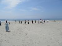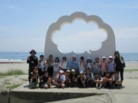 表浜でのレクレーションで野外活動がはじまりました。いい顔で、みんなで記念写真をパリチ!