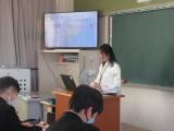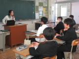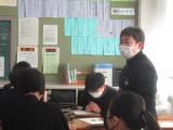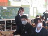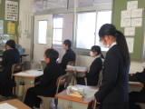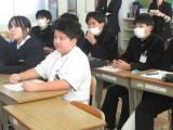 11月11日(火)の1時間目に、喜寿苑のかたを3名お招きして、1年生の福祉講座を行いました。「介護」とはどういう仕事なのかを資料をもとに教えていただきました。夏休みに喜寿苑ボランティアに参加している生徒は、経験したことを通して積極的に発言していました。