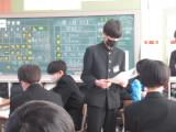 11月12日(水)の5時間目に、社会福祉協議会から2名の方が来校され、高齢者疑似体験を1年生が行いました。