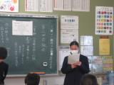 1年生は、今日の4時間目の総合的な学習の時間に、来週予定されている「喜寿苑訪問」で、利用者さんとどんなことをして交流するかを考えました。その前に、昨年度訪問に行った経験を2年生が1年生に話してくれました。どんな遊びが喜ばれたか、どういう遊びが難しかったかなどをわかりやすく伝えてくれました。また、コミュニケーションを図る場合は、腰を落として目線を合わせて話すこと、大きな声でゆっくり話すことなど、経験したからこその言葉はとても説得力があり、1年生も先輩の話に熱心に耳を傾けていました。