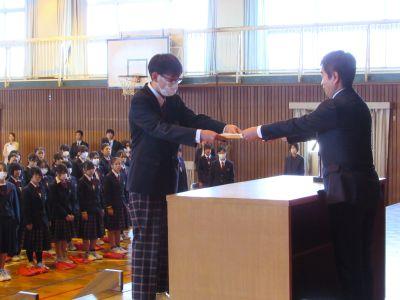 令和7年度の『修了式』を行いました。各学年の代表生徒に「修了証」を手渡した後、2名の生徒の「1年間の振り返りスピーチ」を聴きました。二人ともこの一年をしっかりと振り返り、具体的な来年度の目標についてまで、全校生徒の前で堂々と発表しました。また、話を聴く姿勢や校歌の歌声、入退場の様子から、学校全体から『来年度への意気込み』を強く感じました。各教室では、担任から「修了証」と「通知表」が渡され、一人一人がこの一年を振り返りました。南陽中生は皆、この一年で大きく成長しました。「できるようになったこと」「がんばったこと」を自身とし、四月からまた、新たな目標に『挑戦』してほしいと願っています。