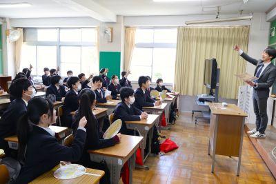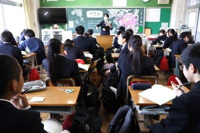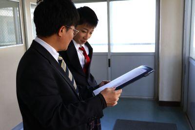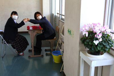 3学期に入り「『3年生を送る会』を成功させよう!」と、1・2年生の準備にも熱が入ってきました。登校時の昇降口がいつも以上に盛り上がっているのでのぞいてみると、生徒会執行部が、生徒会企画用のインタビュー撮影を行っていました。「一番楽しかったことは」「修学旅行で一番思い出に残ったことは」「熱い恋をしましたか」など、後輩たちのインタビューに、とても楽しそうに応じる3年生の姿が微笑ましかったです。どんな生徒会企画になるか、今からとても楽しみです。