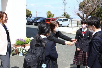 春の訪れを感じさせる、あたたかな陽ざしが降り注ぐなか、『第41回 卒業証書授与式』を挙行しました。多くの来賓、保護者の皆様のあたたあかな眼差しに見守られ、157名の卒業生全員がとても立派な姿で巣立っていきました。在校生は、1年後・2年後の自分の姿を思い浮かべながら、3年生の素敵な姿を瞳に焼き付け、そして、見送っていました。校舎を出たあと、いつまでも名残惜しそうに、昇降口や正門付近で写真撮影等、和やかに過ごす卒業生の姿が印象的でした。「卒業生のみなさん、卒業おめでとうございます!それぞれの場所での、さらなる活躍を願っています。」