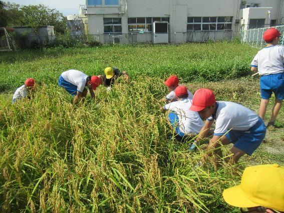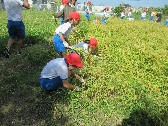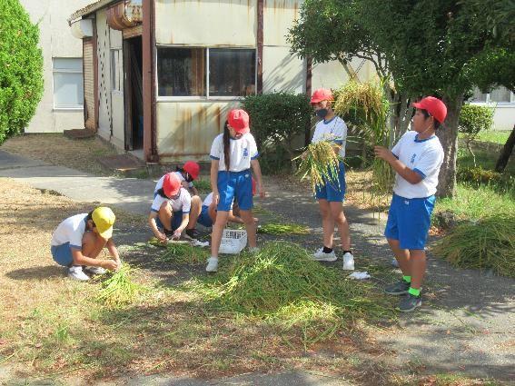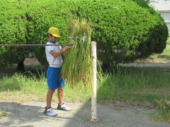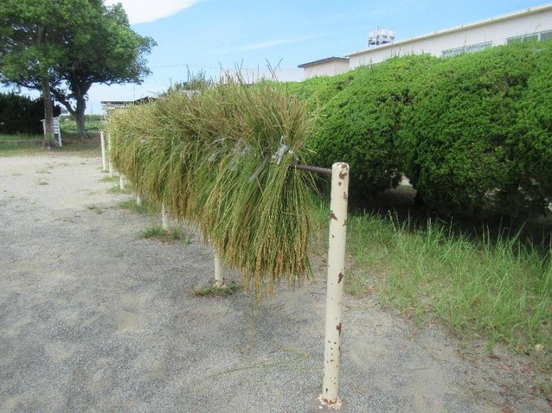 3日(水)に5年生が稲刈りをしました。5年担任、米作りのスペシャリスト成宮先生によると、「上出来。豊作」とのこと。倒れそうなまでに首を垂れる稲穂を見て、納得です。