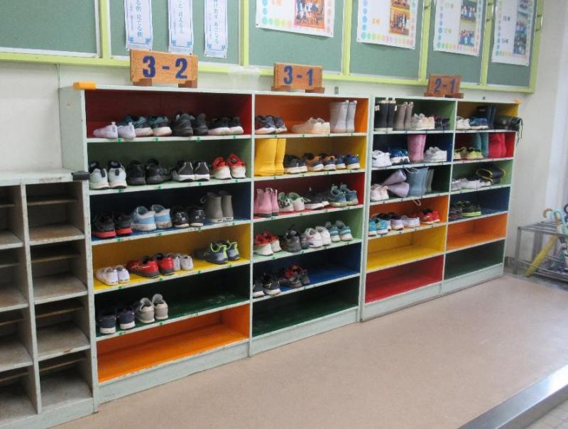 5日(金)は台風の接近・通過が予想され、登校時の大雨が心配される朝でした。しかし、幸いなことに登校時の降雨はほぼ0。みんないつもどおり元気に校門を通っていきました。さて、下駄箱の様子を見に行くと…