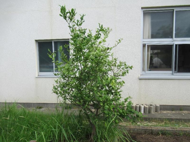 他にも実のなる木があったことを思い出しました。あたりを見回すと、3・4組の畑のそばにレモンの木がありました。
