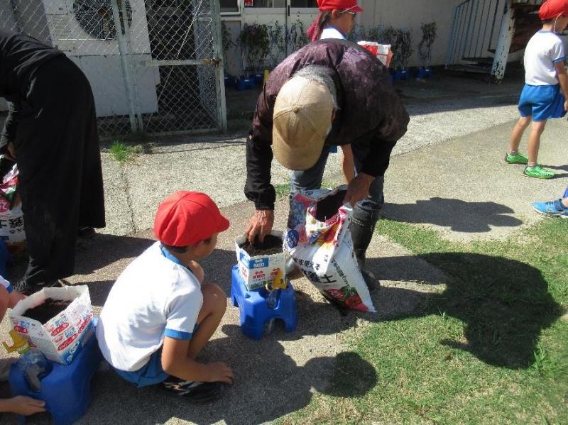 「日が当たるように、土はぎりぎりの高さまで入れるんだよ」