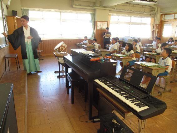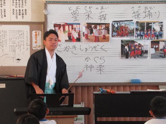 5時間目には、老津神社の宮司である中村さんが、3年生のはばたき学習のために来てくださいました。