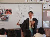 5年女子が舞に参加するのをはじめ、多くの子どもたちが毎年足を運んでいる例大祭。なじみはあっても、その歴史や全容を知らない子どもたちからの質問に、一つ一つていねいに答えてくださいました。