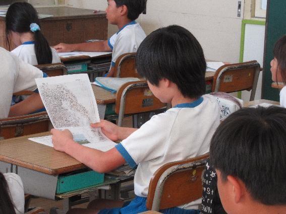 毎年お話をしてくださるふるさと先生の鈴木敬さんが、17日(水)に4年生の教室に来てくださいました。老津の海が埋め立てられる前、遠浅の海で過ごした子どものころのことを、手作りの資料を使っていろいろと話してくださいました。