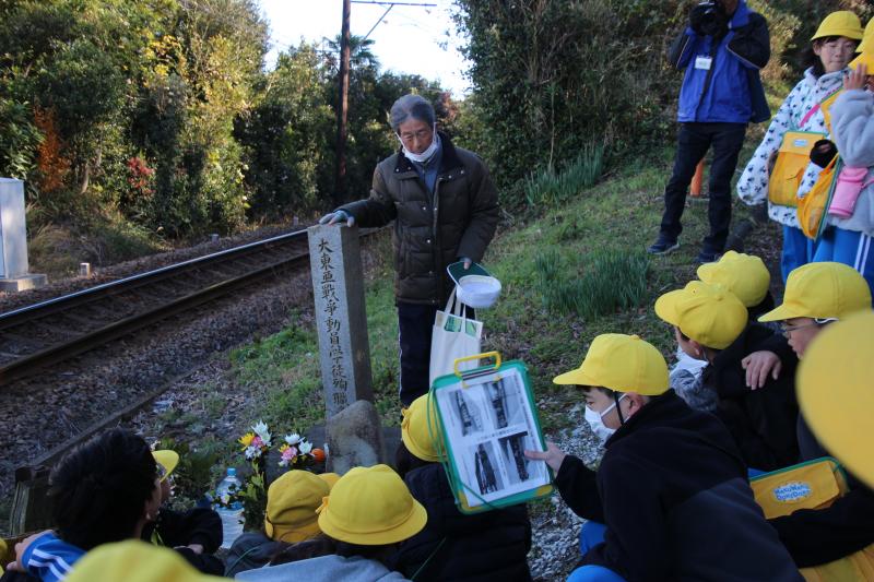 6年生は、社会の太平洋戦争の学習で、豊橋も空襲の被害を受けたことを学びました。さらに、総合的な学習では地域の近くでも渥美線電車機銃掃射事件という惨劇があったことを知り、どのような被害があったのかを証言集をもとに調べ、学習を進めていきました。被害者の遺族や語り部の話を聞き、事件のあった現場へも出かけました。これらの学習を通して感じた戦争の悲惨さや戦争のない日本を未来につないでいくために、自分たちにできることについて考えを深めました。