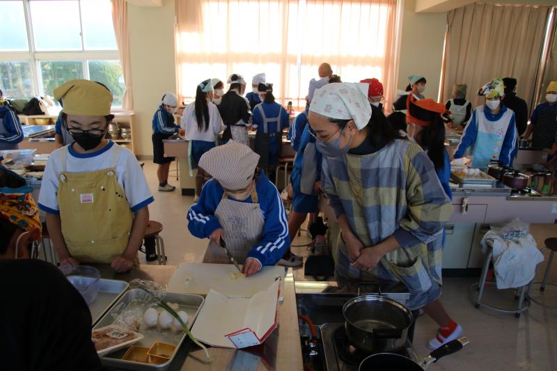 アジア料理(フィリピン)の講習会を通して、アジア文化の一端に触れ、異文化理解を深めることができました。学んだことを新聞にまとめる活動を通して、表現力を育んでいます。コミュニティ・スクールの一貫として、保護者数名の活動支援も得られ、地域・保護者共ともに、本事業への理解を深めることにも有効でした。