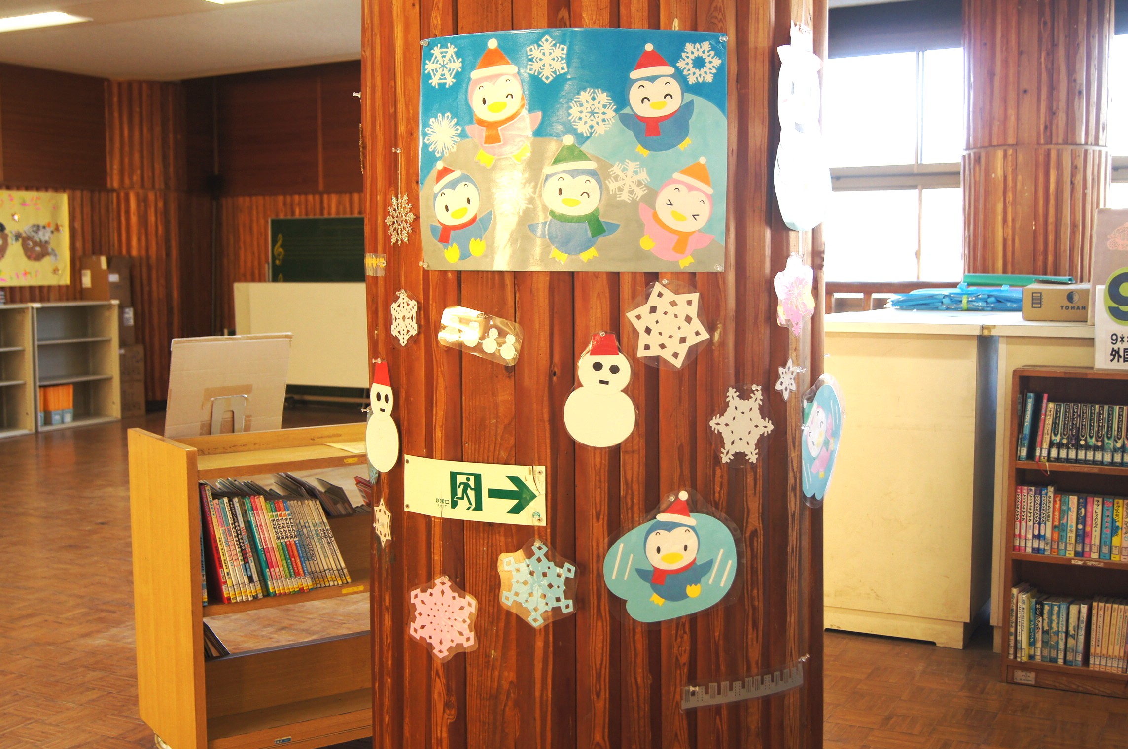 冬の掲示にはペンギンが登場しています。癒されますね。