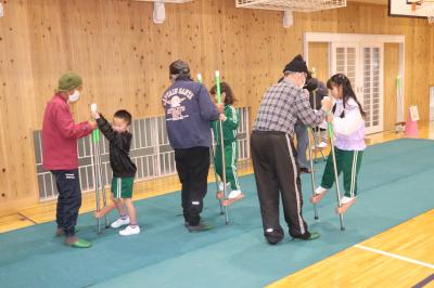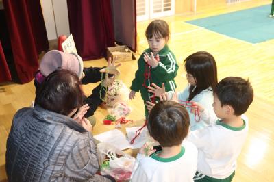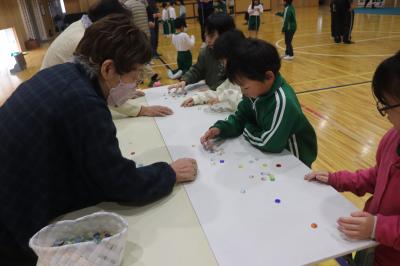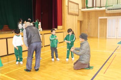 杉山校区明日望会のかたがたに、昔遊び(お手玉・あやとり・おはじき・ゴム跳び・竹馬・ぽっくり・こま・けん玉)を教えていただきました。初めて挑戦した遊びもありましたが、上手にできると「やったぁ!」「見てみて!」と笑顔いっぱいになり、みんなで楽しむことができました。