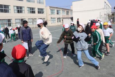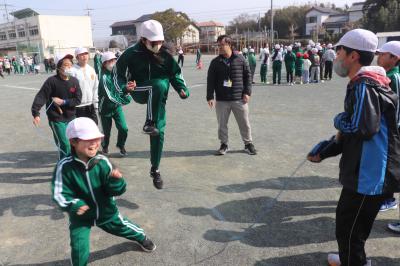 ふれあいタイムに「たてわり班対抗長なわとび大会」が行われました。度重なる学級閉鎖で,練習がままならない状況ではありましたが,たてわり班ごとに自主練習をがんばってきた成果を発揮しました。