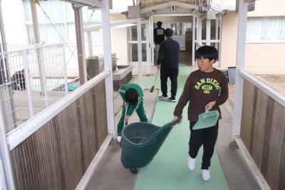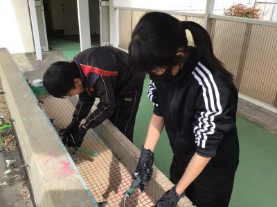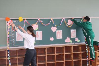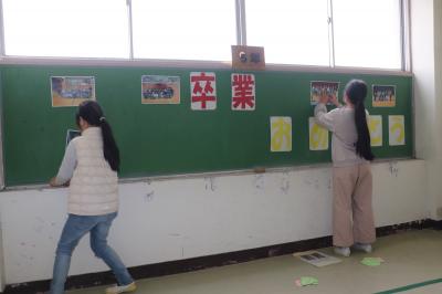 卒業式にむけて,4・5年生が体育館や教室のそうじ・準備・飾り付けを行いました。