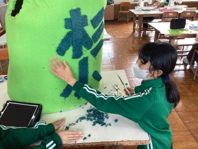 ・学校をきれいにするために「バードくんぞうきん」をミシンでぬって作りました。