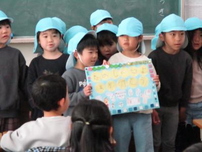 自分たちで考え準備したゲームの説明をし、年長さんに楽しんでもらうために、はりきって活動しました。4月になったら、1年生は2年生に進級します。優しいお兄さんお姉さんになれそうです。