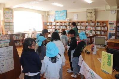 「せっかく小学校に来てくれたのだから,小学校のことをもっと知ってほしい」と考え,教室や図書館など,1年教室のまわりをたんけん(案内)しました。