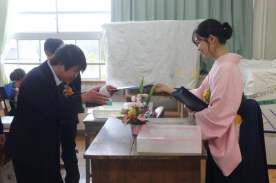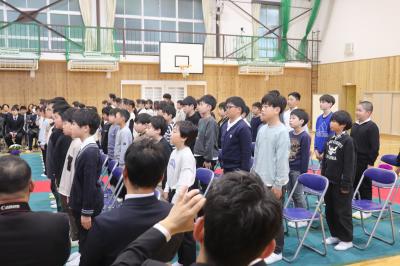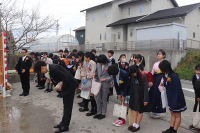 卒業生のみなさん,ご卒業おめでとうございます。中学校での更なる活躍を期待します。