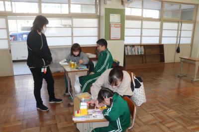 ソフトバレーボールを使って,円陣パスの練習をしました。ボールをつなぐために声を出すことや,自分から動くことなどを教わりました。