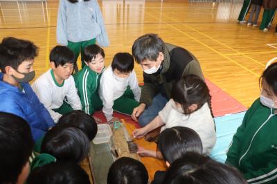 講師の先生からの「今日の講座を通して,より理科を好きになってほしい」というお話を真剣に聞く姿が印象的でした。