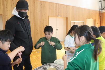 社会科の学習の一環として,豊橋を代表する伝統工芸品である「豊橋筆」を作る体験活動を行いました。