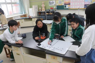 特に電磁石を応用したリニアの模型は大人気で,休み時間になっても模型の前に多くの子が集まるなど,電磁石への関心を高めていました。