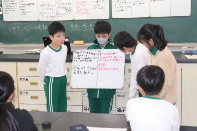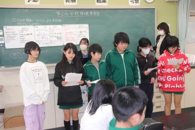 「杉山っ子の健康生活を振り返り、来年度につなげよう」をテーマに、学校保健委員会を行いました。「けがや病気にならないようにするために大切なこと」「杉山っ子の心と体が元気になる方法」について、4~6年生の健康委員が意見を出し合いました。ここで話し合われたことを全校に広げ,杉山っ子がさらに健康・安全に過ごせるよう,活動を展開していきたいと思います。