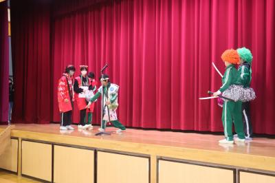 「劇団杉山クラブ」は,昔話「桃太郎」を劇にしてコミカルに発表しました。