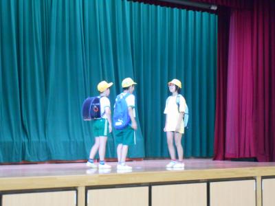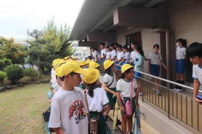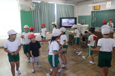 その後は,登下校の途中に不審者に遭遇した場面を想定しての避難方法を確認しました。どの子も真剣に避難訓練をすることができました。