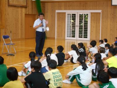 本校では,朝の児童集会において学校長による「いのちの講話」を実施しました。