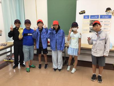 消防車のことや消防士の仕事について教えていただくとともに,煙体験や水消火器による消火体験を行いました。煙体験では,煙が充満している部屋の中が想像よりも暗いことに驚いていました。右手で壁を触りながら慎重に進んでいました。水消火器の体験では,的をしっかり狙って消火器で放水することができました。
