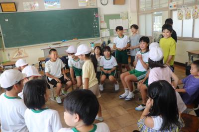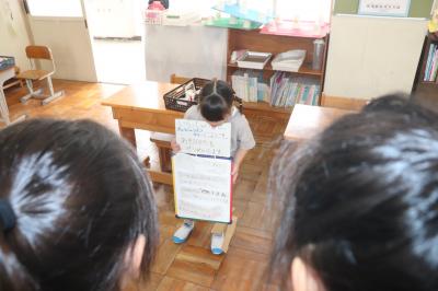 2年生と5年生の代表の子が,1学期にがんばったことや2学期にがんばりたいことを発表しました。