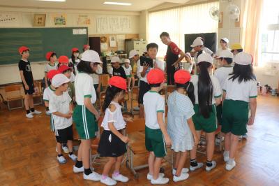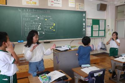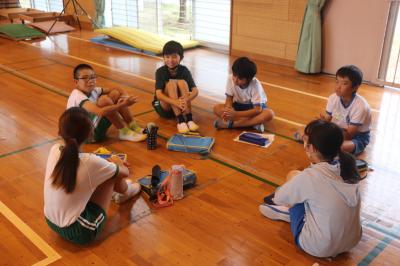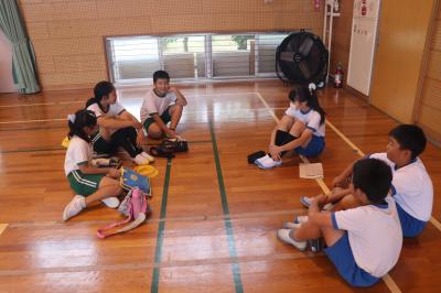 健康委員会で司会を進行し,劇を発表しました。その後,スクールカウンセラーの新村先生を講師にお招きして,4,5,6年生が「自分を守るために大切なこと!気分が楽になるリラクゼーション方法」について学びました。緊張していると肩が上に上がっていることが多いので,深呼吸をして肩を意識して下げる方法や,楽しかったことやうれしかったことを思い出しながら深呼吸する方法を教えていただきました。更に,嫌な気分の時に,手を交差して鎖骨の下を叩きながら息を吸った後,強めに吐き出すとよいことも教えていただきました。
