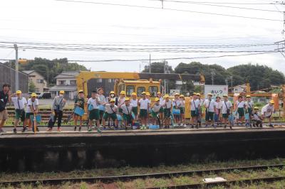 たてわり班で,学校周辺に落ちているごみや落ち葉を拾ったり,雑草を取ったりしました。