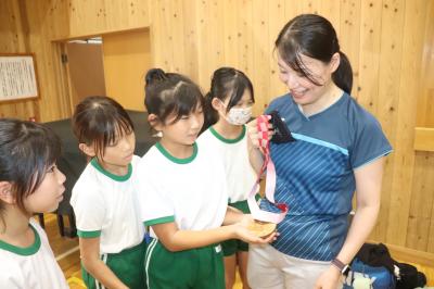 実際に銅メダルを持ったり,一緒にバドミントンをしたりと,たいへん貴重な経験をさせていただきました。