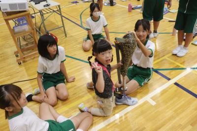 汐川干潟では,渡り鳥を双眼鏡で観察したり,汐川干潟を守る会の鈴木隆年さんにうなぎを見せていただいたりと,たくさんの体験をしました。章南中学校の生徒との生き物探しでは,見たことのない生き物に目を輝かせる姿がたくさんありました。子ども達の振り返りからは,「280ヘクタールになったから小さいと思ったけど,本当に大きい干潟で,びっくりした」「汐川干潟の生き物と自然を守りたい」と,汐川干潟への愛があふれていました。