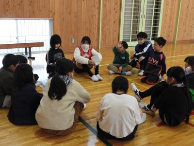 1月8日(木)、青空タイムに短縄オリエンテーションが行われました。チャレンジ大会の種目が発表され、計画委員会から跳び方の紹介がありました。