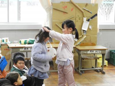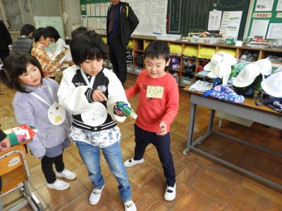 1年生が、嵩山保育園の年長さんを招き、交流会を開きました!