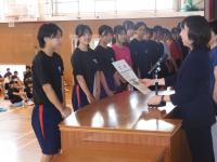 始業式では、夏休み中に行われた各種大会やコンクールにおいて、優秀な成績をおさめた生徒たちの表彰が行われました。