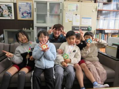 また「ばらばら九九」も難なくクリアーし,校長先生お手製のきらきらメダルをかけてもらい,とてもうれしそうでした。おめでとう!