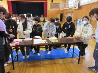 また,余分なのりを落として筆先を整える「仕上げ」という作業は,一人一人が体験し「私だけの筆」を完成させることができました。自分で作った筆を手にし,「なんか習字が上手に書けそう」と,とても嬉しそうでした。