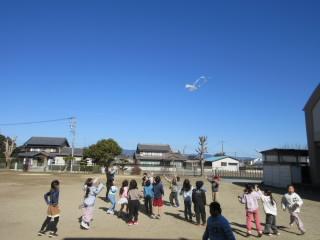 昨日,北運動場で担任の先生が試しにあげてみた凧を見て,歓声が上がっていたのを思い出しました。